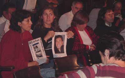 Había pocas caras conocidas. Quizá por experiencia en hablar frente a una cámara, sobresalían Alberto Santillán y María Teresa Schnak, la madre de Sergio Schiavini. Ellos, y los que apenas se animaban a charlar en voz baja, levantaban la misma consigna: “El dolor es el mismo, el asesino es el mismo, los derechos deben ser los mismos”. Blumberg fue invitado al encuentro, aunque no asistió. Los convocantes rechazaron soluciones “voluntaristas de algunos políticos que quieren lavarse la cara con nuestro dolor” y contra ellos cargaron las responsabilidades: “La clase política es la principal responsable de la inseguridad”.