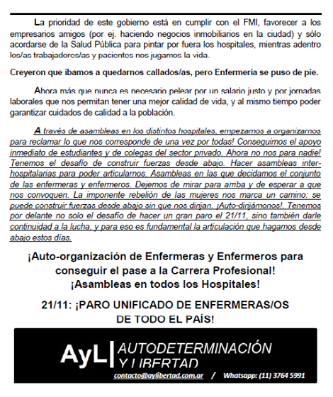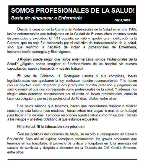 APOYAMOS LA LUCHA DE LXS ENFERMERXS POR SER INCORPORADXS A LA CARRERA PROFESIONAL HOSPITALARIA Publicado 8 noviembre, 2018 · Actualizado 13 noviembre, 2018 Share